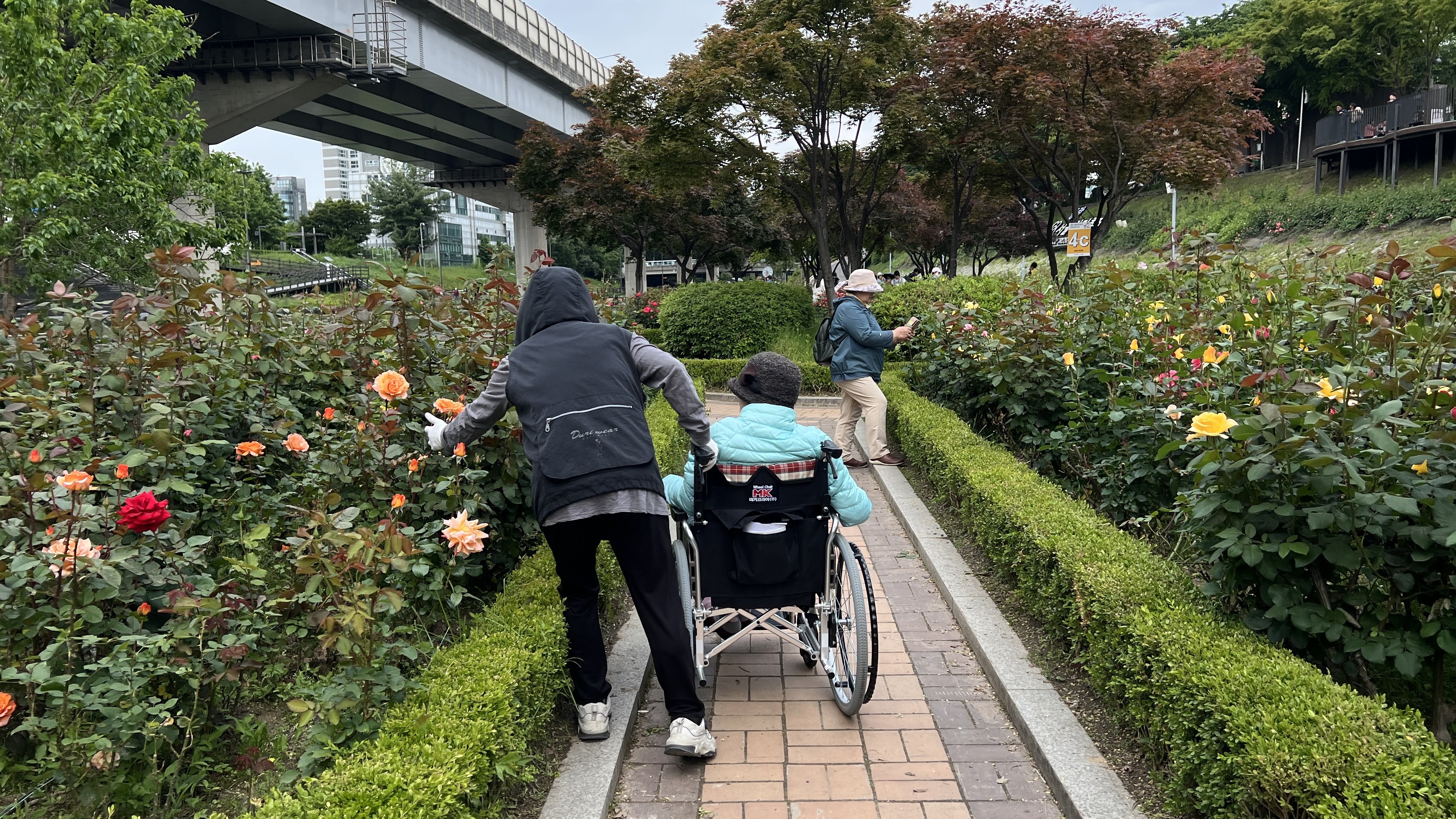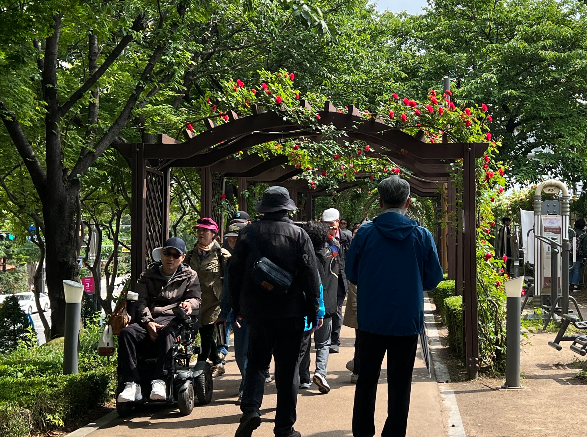 화려함으로 가득한 이곳에서 가족, 연인, 친구들이 꽃길을 걸으며 봄을 만끽할 수 있어요. 매년 찾는 시민 중에는 전동휠체어를 탄 어르신, 노쇠하신 부모님을 휠체어에 태우거나 아이를 유아차에 태워 나들이 나온 가족, 반려동물 이동카트를 끄는 사람들도 많습니다. 장애가 있든 없든, 걷든 바퀴로 이동하든, 모두가 장미를 즐기려는 같은 목적으로 축제에 옵니다.